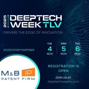 We’re excited to share that M&B IP Patent Firm is an official Ecosystem Partner for DeepTech Week Tel Aviv 2025 — one of the world’s most anticipated gatherings for innovation, technology, and investment!